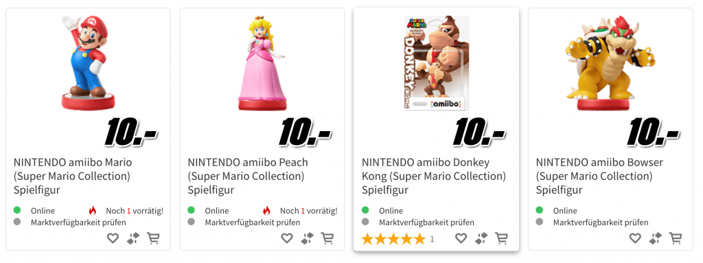 Media Markt bietet jetzt die klassischen Nintendo amiibo Figuren zum Sonderpreis von 10 CHF an. Diese Aktion beinhaltet vier Charaktere: Mario, Peach, Donkey Kong und Bowser. Jede amiibo Figur bietet die Möglichkeit, das Spielerlebnis mit zusätzlichen In-Game-Vorteilen zu erweitern. Ob als Dekoration für das heimische Regal oder als interaktives Element zum Freischalten neuer Inhalte – diese amiibos sind vielseitig einsetzbar. Für Nintendo-Liebhaber und Sammler ist das ein Angebot, das man nicht verpassen sollte. Verfügbar, solange der Vorrat reicht.