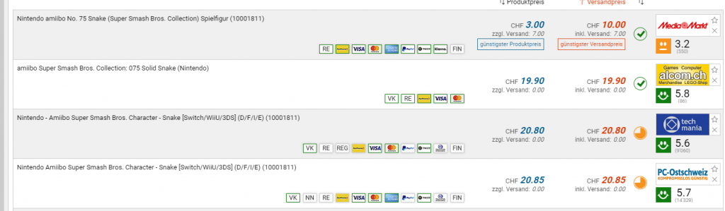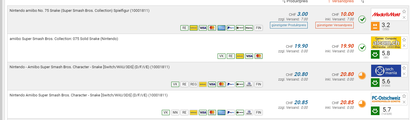 Bei Media Markt gibt es den NINTENDO amiibo No. 75 Snake für den neuen Bestpreis von CHF 10.- inkl. Versand.