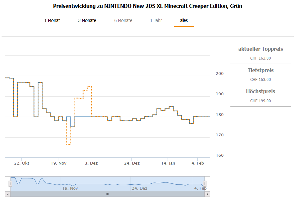 Gemäss toppreise war der bestprice bislang bei 166.40 CHF, der zweitbeste Preis liegt aktuell bei 179.90 CHF.