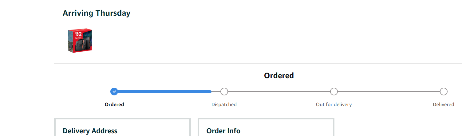 Amazon support sagt alle aktuellen Switch 2 bestellungen werden nicht verschickt - ausverkauft