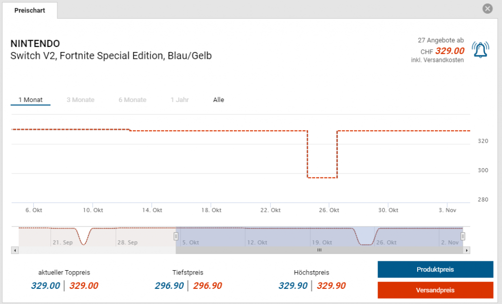 Bei Amazon FR gibt es die Nintendo Switch in der Fortnite Edition für den neuen Bestpreis von CHF 289.-. Der vorherige Bestpreis war CHF 296.90. Der zweitbeste Preis beträgt CHF 329.-.