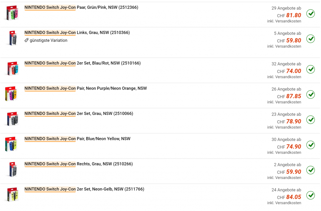 Das ist gleich teuer wie der bisherige Bestpreis, zweitbester Preis: CHF 71.90 über die verschiedenen Farbvarianten her.