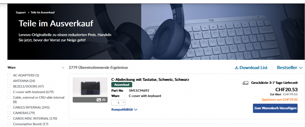 Lenovo bietet gerade viele Ersatzteile mit bis zu 80% Rabatt an.