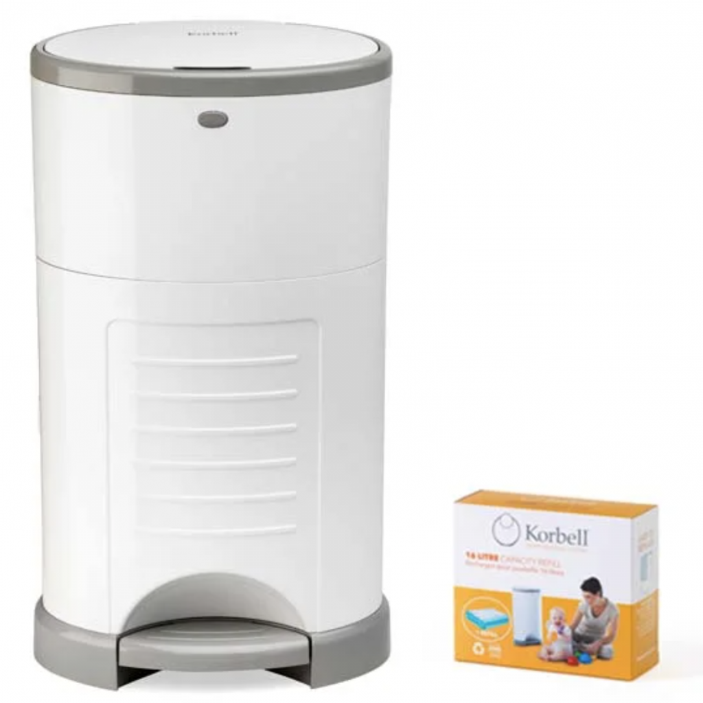 Auf der Suche nach einem Windeleimer bin ich über den Korbell SIM250DS gestolpert, da er Testsieger bei einigen Portalen ist. Besonders hervorzuheben ist wohl, dass man sowohl die (teuren) Schläuche, als auch reguläre 17L Säcke benutzen kann.