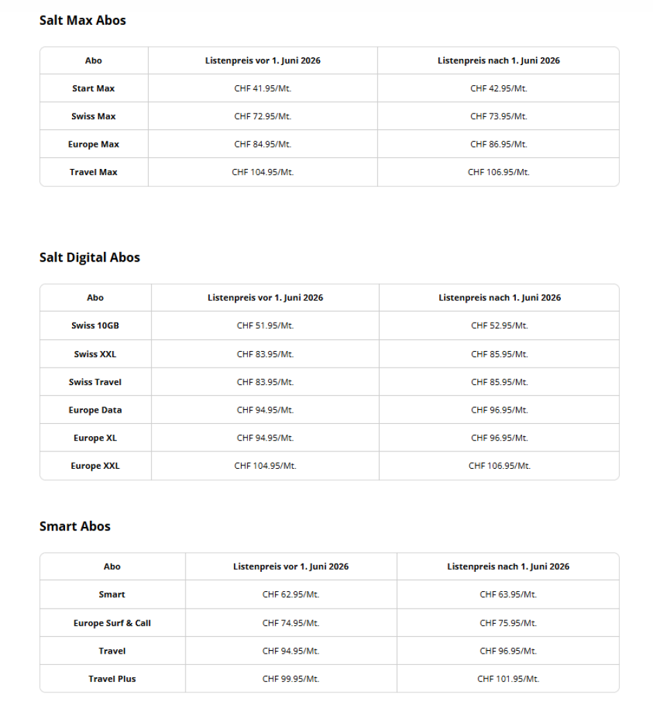 Gibt's bei Salt jetzt jedes Jahr neue Preisanpassungen? Gab doch schon letztes Jahr eine Preiserhöhung 😆