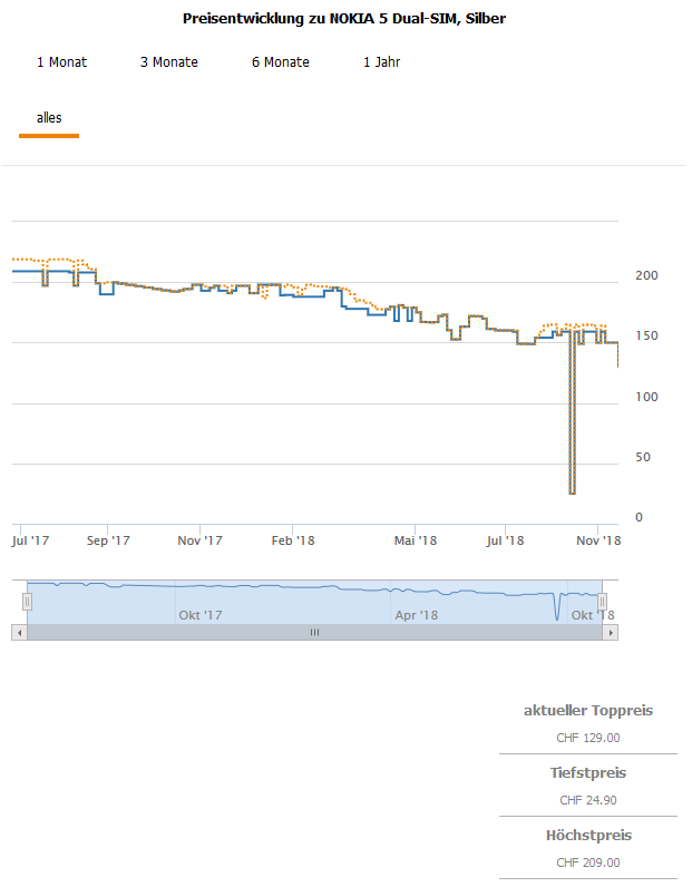 Gemäss toppreise war der bestprice über alle Farben bislang bei 24.90 CHF, was ein Preisfehler gewesen sein dürfte, ansonsten war der bestprice bislang 148.85 CHF.