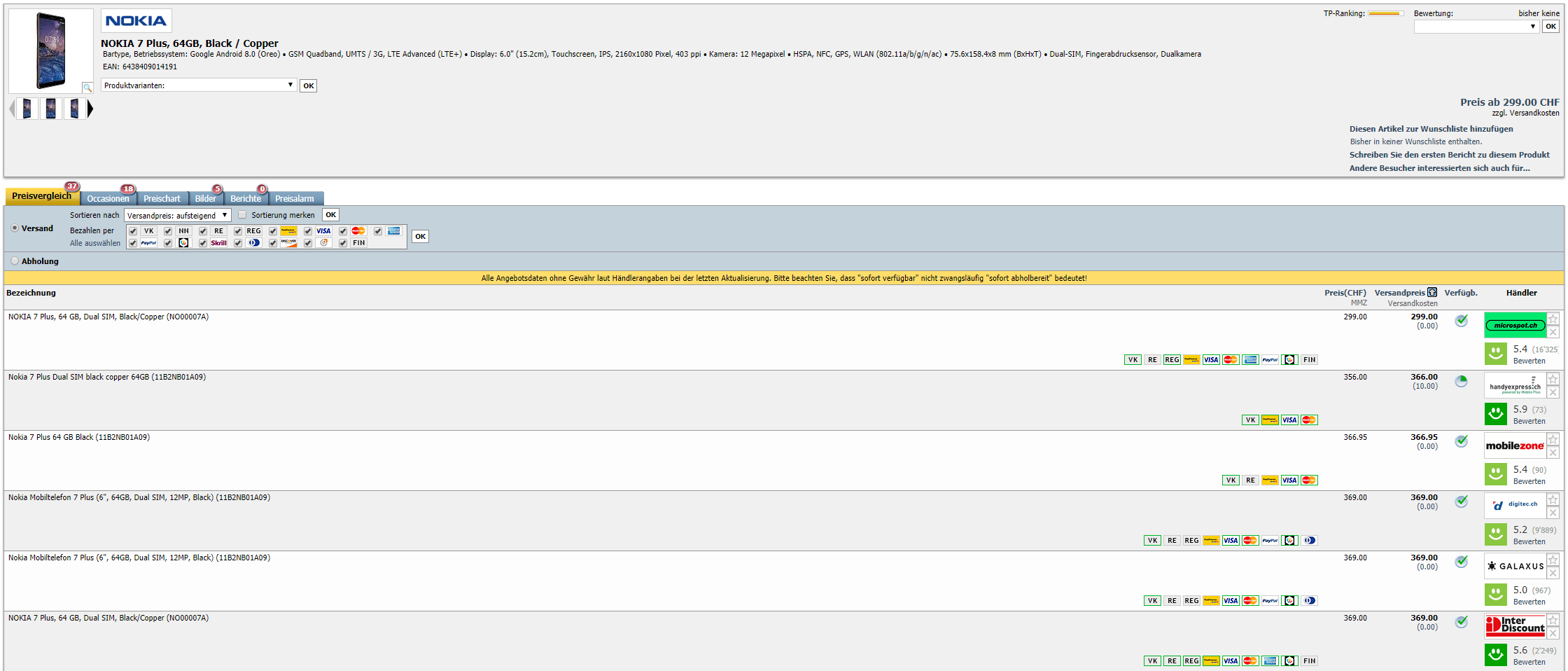 Laut Toppreise gab es das Smartphone noch nie unter 299.00 Franken zu kaufen.