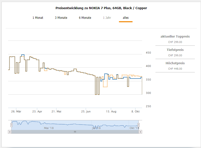 Laut Toppreise gab es das Smartphone noch nie unter 299.00 Franken zu kaufen.