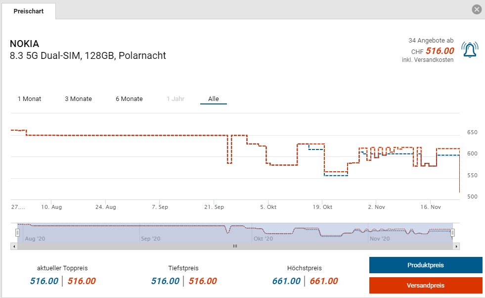 Bei Galaxus und Digitec gibt es das NOKIA 8.3 5G Dual-SIM Smartphone zum Bestpreis von CHF 516.-. Der vorherige Bestpreis war CHF 556.-. Der zweitbeste Preis beträgt CHF 618.-.