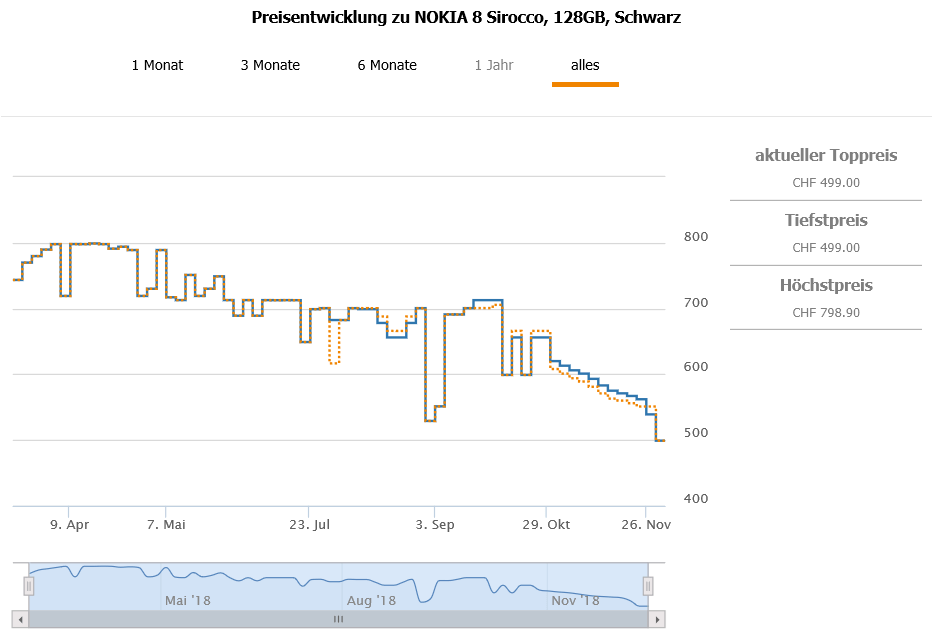 Bei digitec gibt es aktuell das NOKIA 8 Sirocco für 499.- CHF.