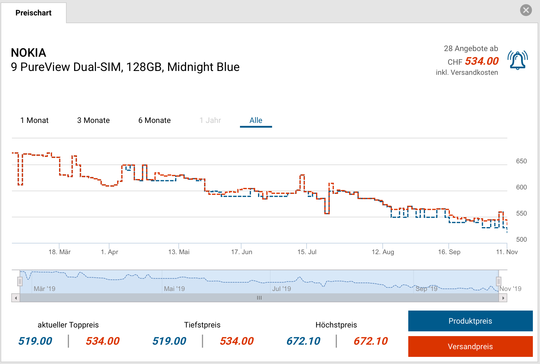 Zweitbester Preis sind gemäss toppreise 534.- CHF.