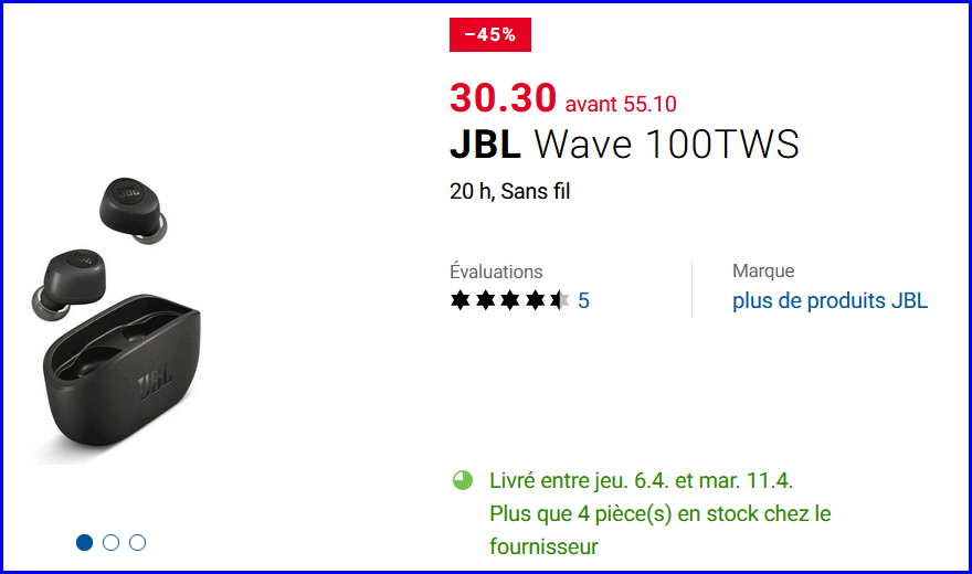 Pour info : JBL Wave 100TWS (lien) au meilleur prix chez Digitec