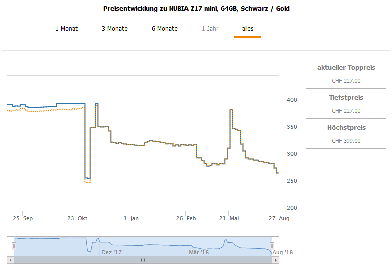 Gemäss toppreise gab es die 64GB Variante bislang nie günstiger als für 252.20 CHF, der zweitbeste Preis liegt aktuell bei 270.- CHF.