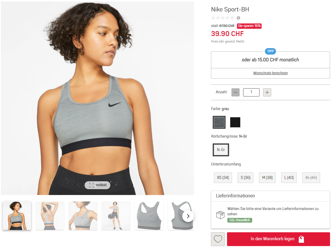 Für Nike-Fans gibt’s Sport-BHs für ca. 19.95 Franken, auch in zwei verschiedenen Farben und mehreren Grössen: