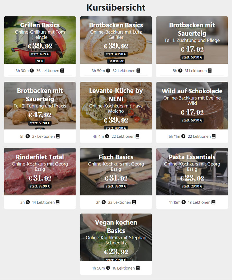 Wenn du mal Back- und Kochprofis genauer über die Finger schauen möchtest, dann ist jetzt der richtige Zeitpunkt dafür: Denn der 7. Juli gefällt uns besonders gut, weshalb es nur an diesem Tag alle 7Hauben Kurse um 20 % reduziert gibt! Wie immer gilt natürlich: Einmal gekauft, immer wieder ansehen. Passend zum 7Hauben Day veröffentlichen wir außerdem einen neuen Kurs: Grillen Basics mit Grillmeister Tom Heinzle. Für alle Grillfreunde lohnt es sich also besonders!