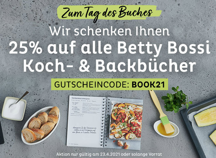 Zum Tag des Buches gibt es nur heute 25% Rabatt auf alle Betty Bossi Koch- und Backbücher wenn man beim Checkout den Gutscheincode BOOK21 verwendet.