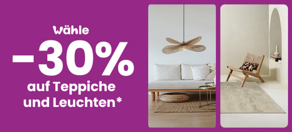 Aktuell gibt’s bei Conforama ein tolles Angebot. Ihr findet nämlich im Bereich Beleuchtung & Teppiche alle Produkte um 30% Reduziert. Das Angebot gilt nur noch Heute!