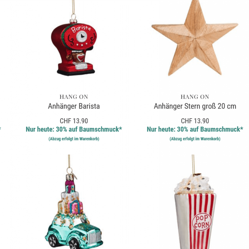 Nur noch bis Mitternacht kannst du bei Butlers Weihnachtsbaumschmuck um 30% reduziert kaufen. Einen Gutscheincode brauchst du nicht, um von dieser Aktion zu profitieren – der Rabatt wird einfach so im Warenkorb angewendet.