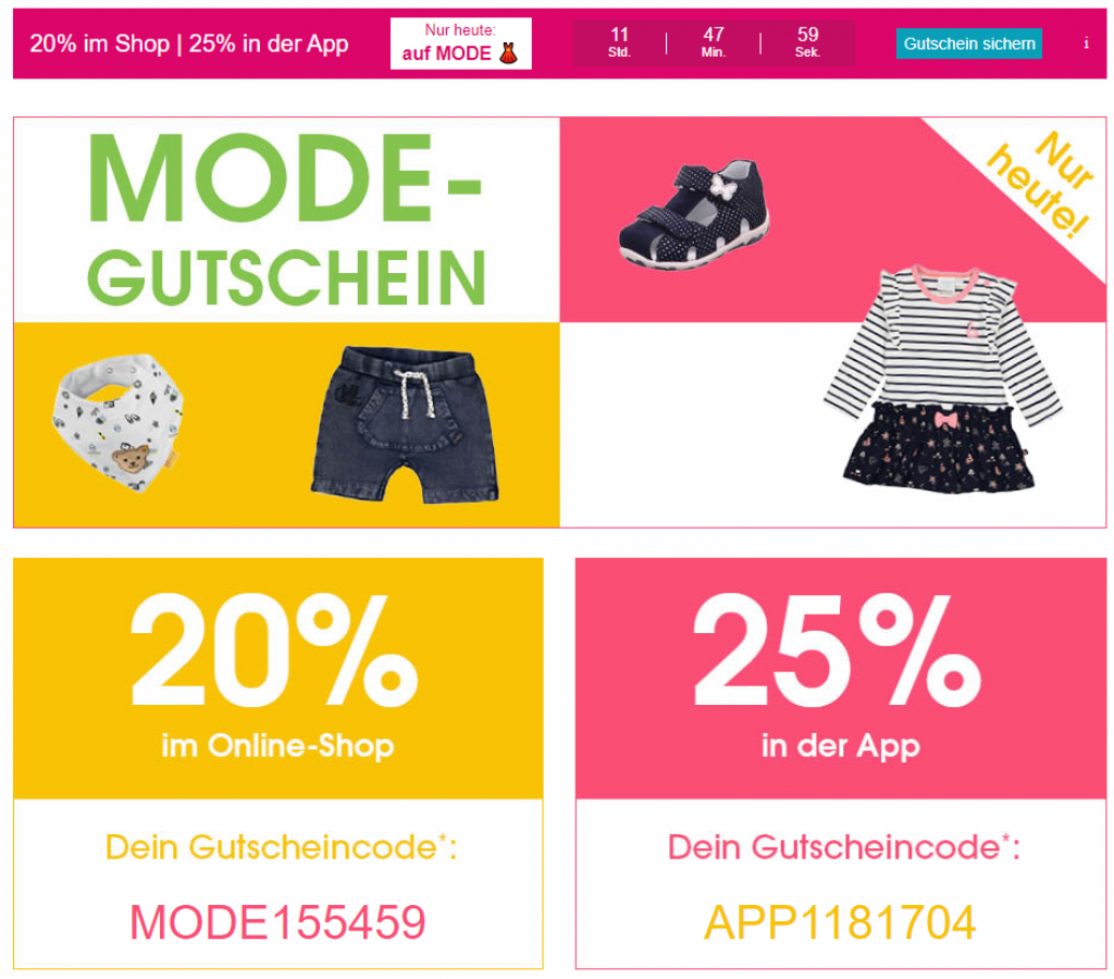Nur heute bei Baby-Markt 20% Rabatt auf Kleinkind- und Babymode.