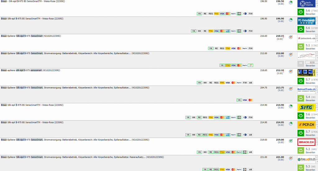 Bei Galaxus gibt es heute das Braun Silk-épil 9 SensoSmart Epilierset für CHF 149.-. Eine Produktseite und damit einen Preischart konnten wir bei toppreise.ch nicht finden, aber als zweitbesten Preis für das Gerät gibt toppreise.ch CHF 196.50 an. Daraus kann man schliessen, dass dieser Deal recht gut ist.