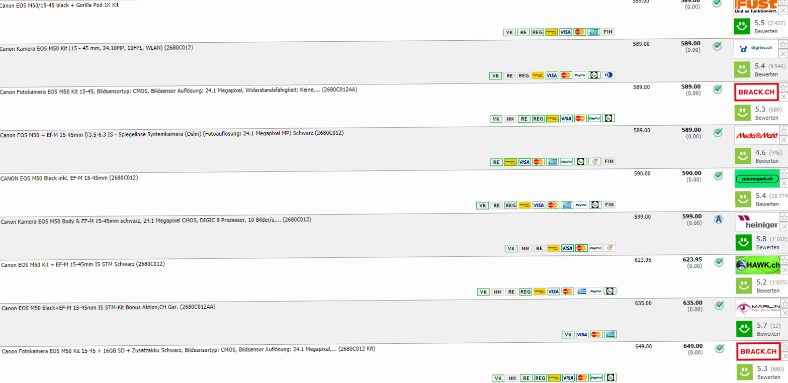 Sag ich doch. Ich wollte lediglich darauf hinweisen, dass das zwar der Bestpreis ist, es aber auch schon mehr zum selben Preis gab. Der Satz "Noch nie vorher gab es die CANON EOS M50 Black inkl. EF-M 15-45mm für weniger als CHF 500.-." ist eben nicht ganz richtig.
