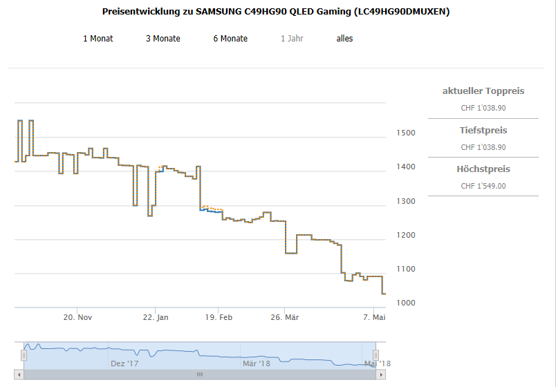 Auf Digitec.ch gibt es gerade den Samsung C49HG90 (49″, 3840×1080) im Tagesangebot. Der Preis schlägt sogar den Tiefstpreis auf toppreise.ch.