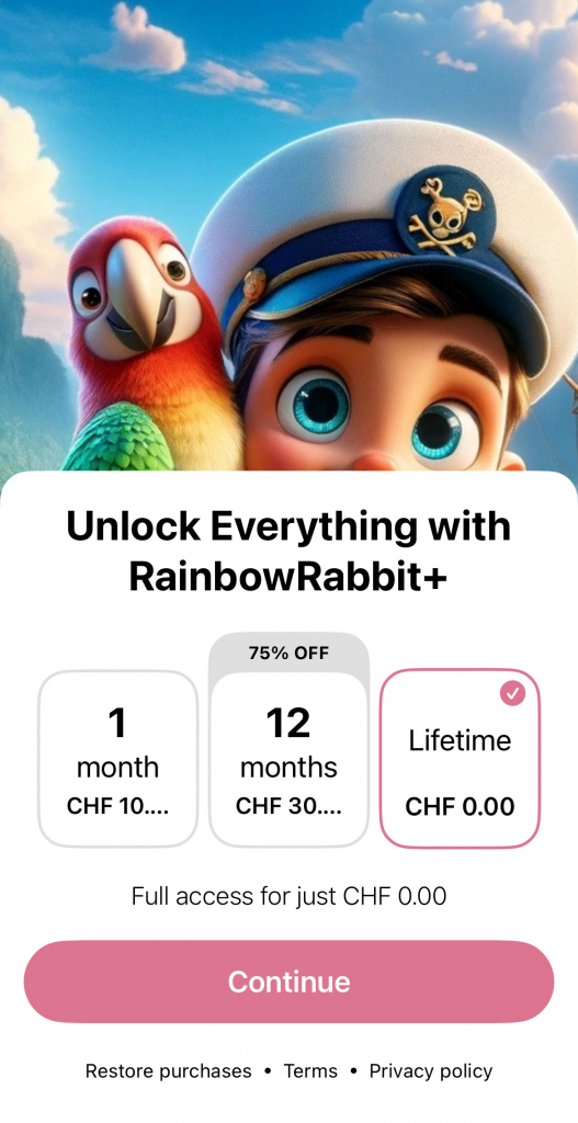 Heute kann man sich den Lifetime Pass freischalten und die englischen Geschichten anhören.