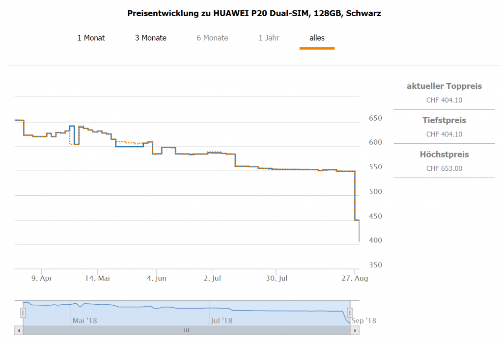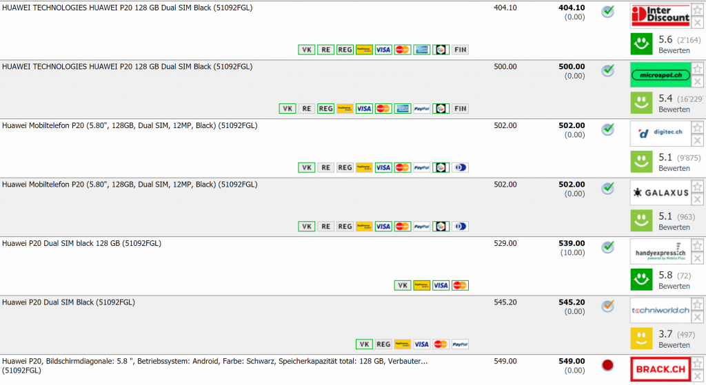 Bei Interdiscount gibt’s gerade das Huawei P20 128GB Dual SIM Handy für gute CHF 404.40 Mit dem Gutscheincode gibt’s noch einmal 10.- Rabatt oben drauf. Der zweitbeste Preis in der Schweiz beträgt CHF 500. Bisher lag der günstigste Preis in der Schweiz laut toppreise bei CHF 449.-