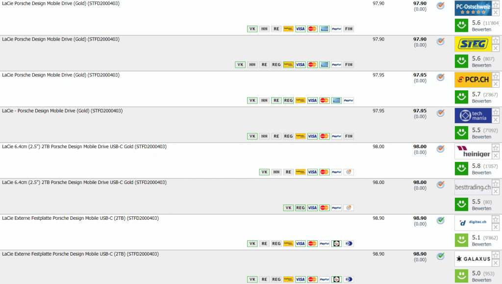 Bei microspot gibt’s gerade die Lacie Porsche Design 2.0 TB 2.5” USB 3.0 externe Harddisk für CHF 69.- Der zweitbeste Preis liegt im Moment bei CHF 97.90, günstiger als für CHF 71.- erhielt man diese externe Festplatte bisher in der Schweiz nicht.