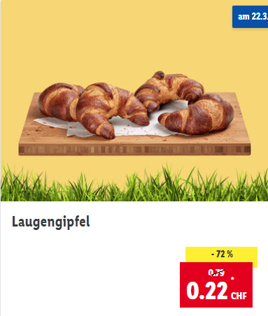 Nur heute gibt es bei Lidl einen Laugengipfel für CHF 0.22 (statt CHF 0.79).