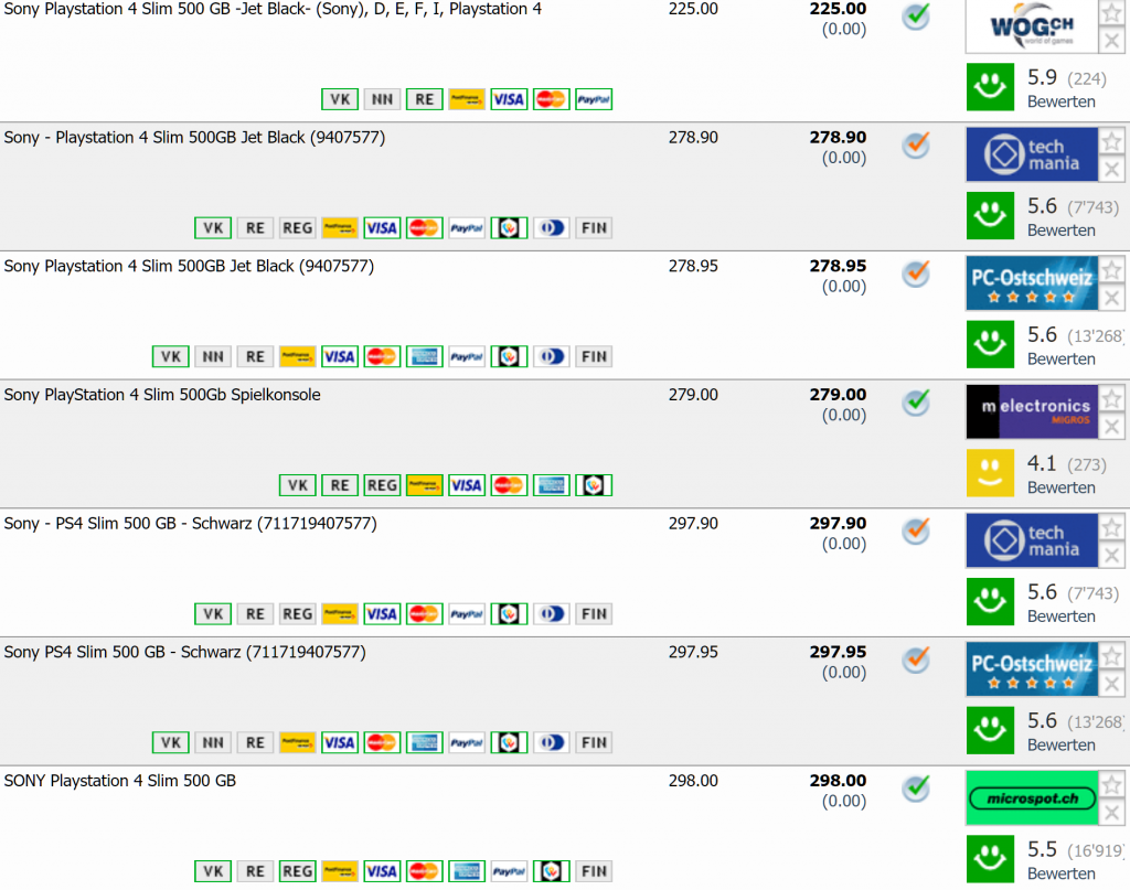 - PS 4 Slim 500GB für CHF 225.- // Bestpreis toppreise: CHF 199.- // Zweitbester Preis: CHF 278.90