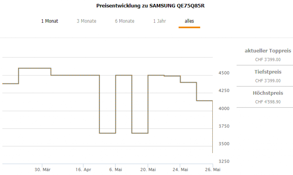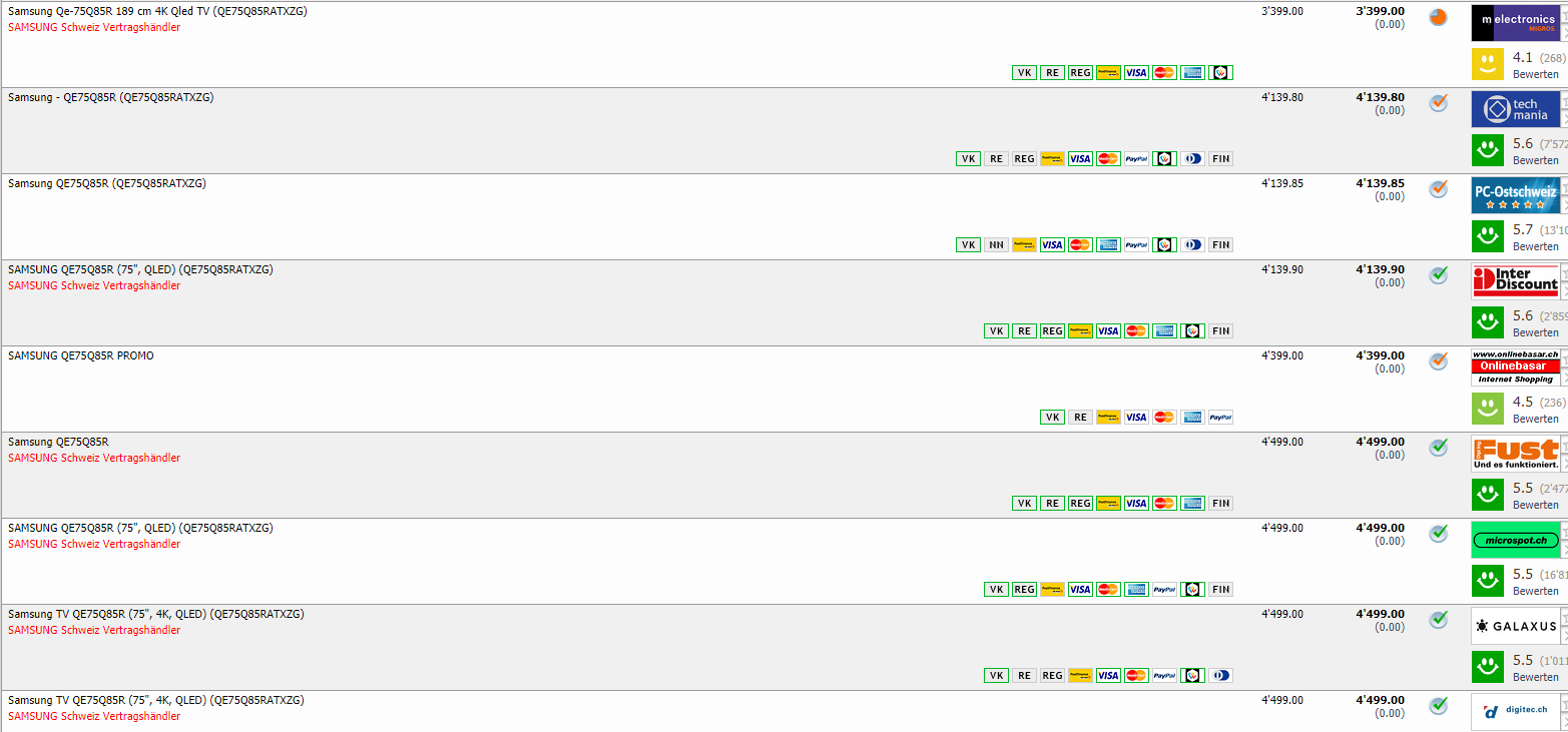 melectronics bietet heute den Samsung QE-75Q85R 189 cm 4K QLED TV für CHF 3399.-. Das ist laut toppreise.ch bisher der beste Preis für dieses Gerät, und der Vergleichspreis liegt bei CHF 4139.80. Mit einem Vorteil von über 700 Franken spart man hier viel Geld.