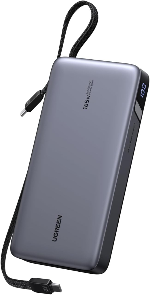 Sehr hohe Kapazität, extrem schnelle Ladung, integrierte Kabel, und breite Kompatibilität mit Laptops (wie MacBook, Dell XPS), Tablets, Smartphones (z. B. iPhone 17, Galaxy S25 Ultra) sowie Geräten wie Steam Deck.