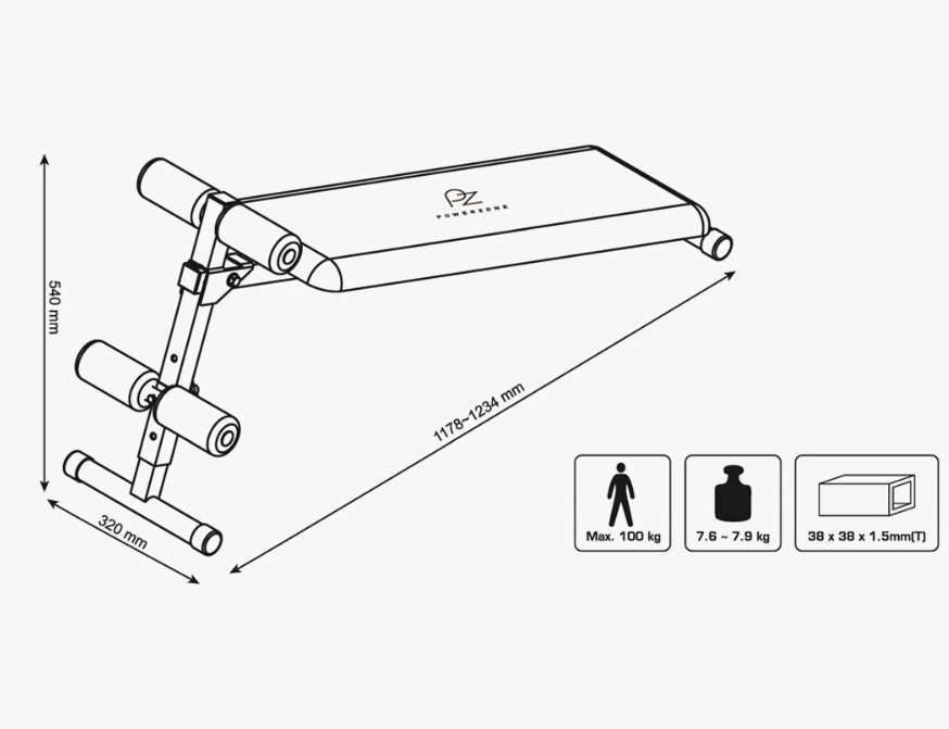 Die Powerzone Sit up Bench eignet sich als kompakte Bank vielseitig für dein Bauchmuskel-Training.Die Bauchtrainings-Bank ist dank ihrer pulverbeschichteten Stahlrahmenkonstruktion besonders stabil und macht auch intensives Training mühelos mit. An den Rückenstützen sorgen Stepp-Polster für Komfort, während die Rollen für deine Füsse und Kniekehlen aus weichem Schaumstoff bestehen. Den idealen Winkel für dein Training kannst du dir selbst nach Wunsch einstellen. Nicht zuletzt ist die nur 7,9 kg schwere, für Benutzerinnen und Benutzer bis 100 kg geeignete Sit up Bench nach dem Training platzsparend zusammenklappbar.
