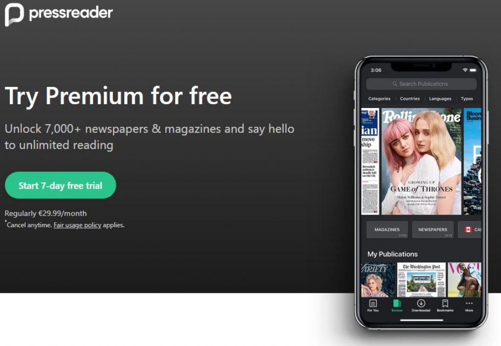 Die Website Pressreader.com bietet die Möglichkeit, tausende Zeitungen aus der ganzen Welt für einen Pauschalpreis von EUR 29.99 pro Monat digital zu lesen. Nebst unzähligen Regionalzeitungen und Schundmagazinen befindet sich darunter auch die NZZ und NZZ am Sonntag. Erwähnenswert auch Basler Zeitung, Le Temps, Handelsblatt, Guardian, Washington Post, Rolling Stone, GQ, Elle, Vogue, Newsweek, Bloomberg Businessweek, u.v.m.