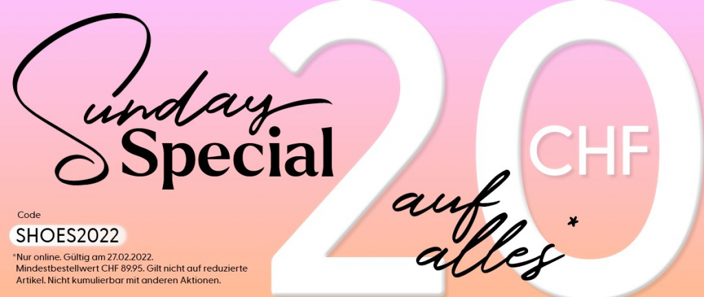 Ab Mitternacht gibt’s mit dem Gutscheincode “SHOES22” 20% Rabatt ab CHF 90.- Bestellsumme. Leider nicht kumulierbar mit anderen Aktionen – am besten jeweils kurz mit Google Shopping vergleichen bevor man bestellt. 😉