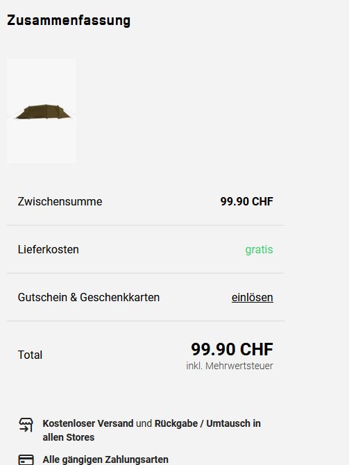 Zelt ist jedoch weder Online noch in den Filialen verfügbar.
