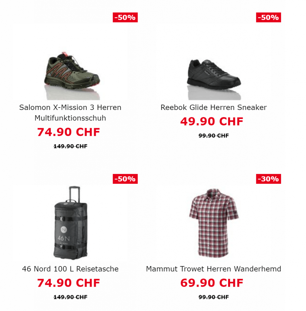 Von Sneakers über Sportschuhe bis zu Wanderkleidern ist alles mit dabei.