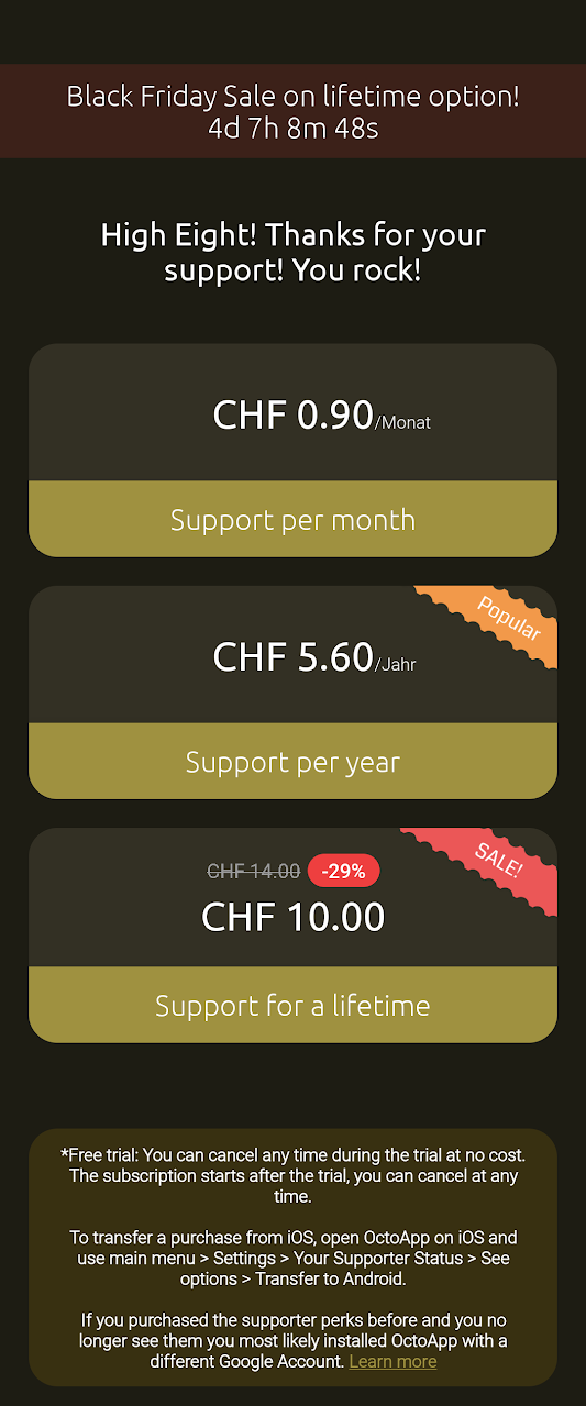đ OctoApp, die smarte App fĂŒr deine 3D-Drucker-Steuerung, hat einen unglaublichen Black Friday Deal auf Lager! Sichere dir die Lifetime-UnterstĂŒtzung fĂŒr nur CHF 10! (statt CHF 14 â du sparst 29%!)