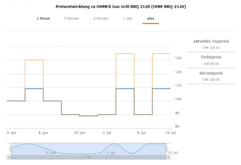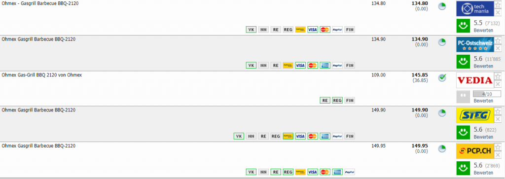 Bei MediaMarkt gibt’s den OHMEX BBQ 2120 für CHF 89.- inkl. Lieferung. Der nächstbeste Preis in der Schweiz liegt bei CHF 134.80. Es gab den Grill allerdings auch schon einmal für CHF 89.-