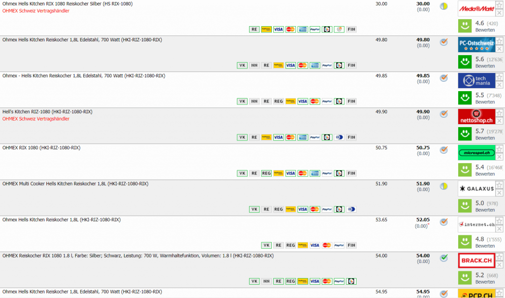 Zweitbester Preis in der Schweiz ist bei CHF 49.80 Bestpreis bisher bei CHF 37.-