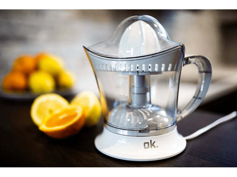 Starten Sie gesund und lecker in den Tag – mit der Zitruspresse OK. OJU 102 gewinnen Sie köstlichen Saft verschiedenster Zitrusfrüchte.
