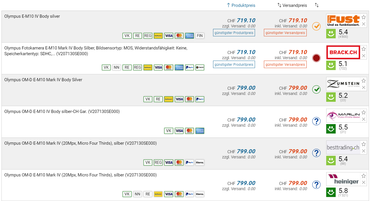 Bei Fust und Amazon kann man sich derzeit das Gehäuse (also Body ohne Objektiv) der Kompaktkamera Olympus OM-D E-M10 Mark IV zum Bestpreis von knapp 700 Franken sichern, bei Amazon kommt man derweil noch etwa 3 Franken günstiger weg.