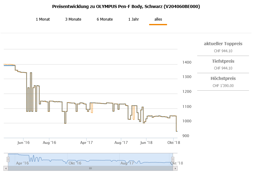 Gemäss toppreise gab es den Body über alle Farben bislang nie günstiger als für 998.- CHF, der zweitbeste Preis liegt aktuell bei 1026.- CHF (Silber).