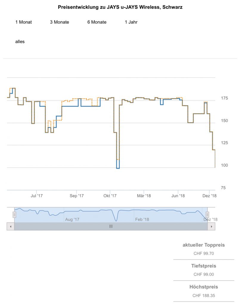 Gemäss toppreise war der bestprice bislang bei 108.90 CHF, der zweitbeste Preis liegt aktuell bei 122.45 CHF.
