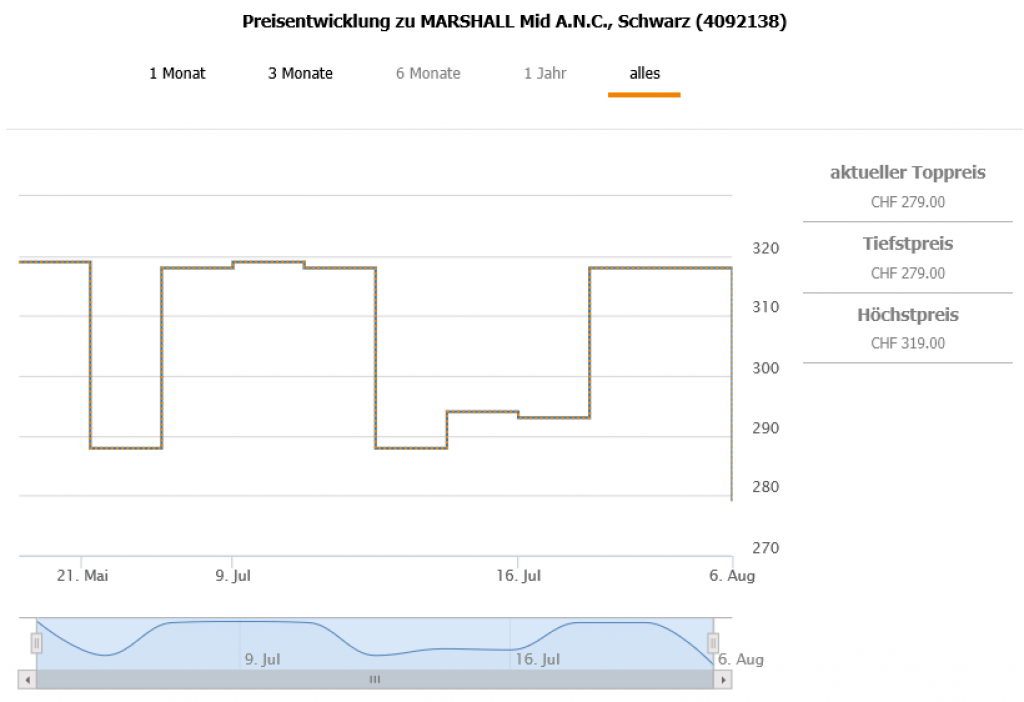 Günstiger als für 287.90 CHF gab es die Kopfhörer gemäss toppreise bislang noch nie, der zweitbeste Preis liegt aktuell bei 319.- CHF.