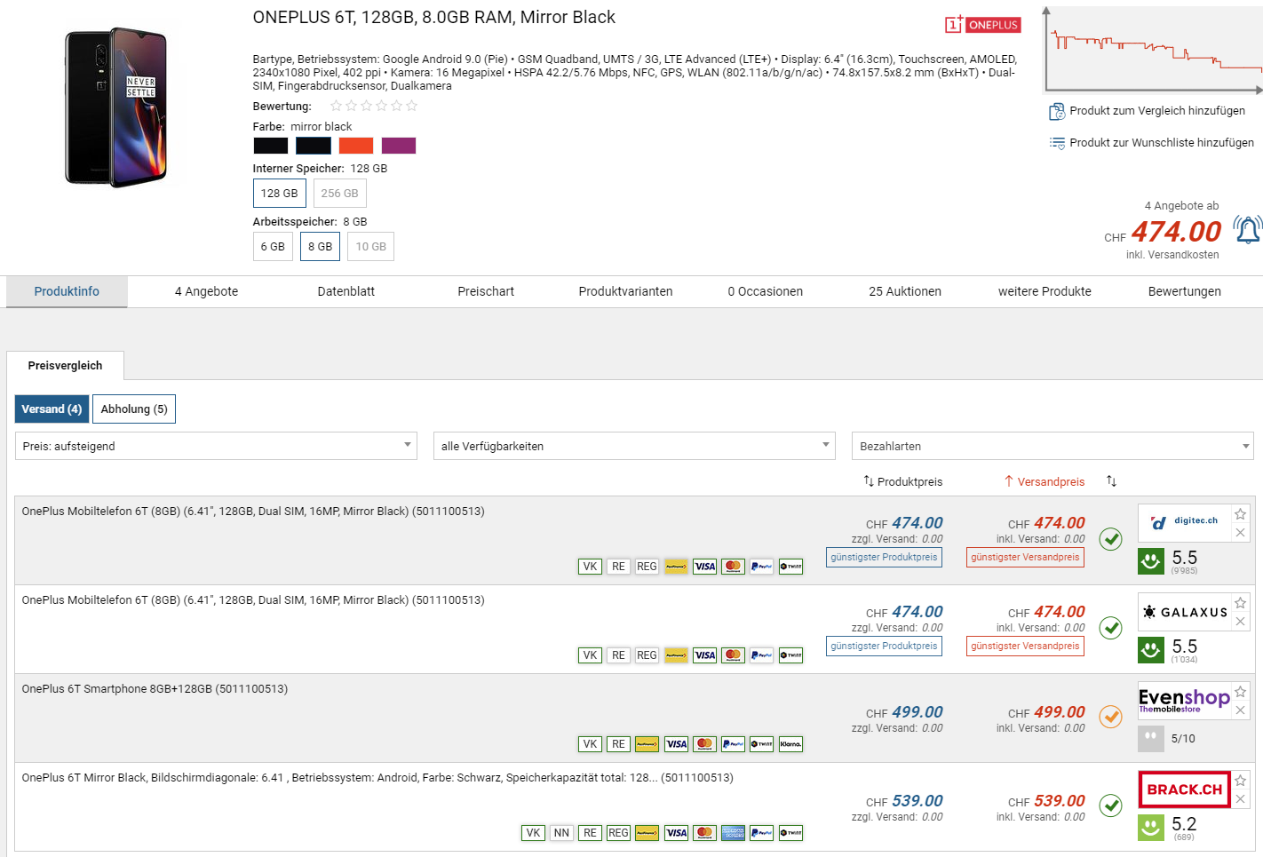 Es handelt sich hierbei um das OnePlus 6T Smartphone mit 128GB Speicher und 8GB Arbeitsspeicher.