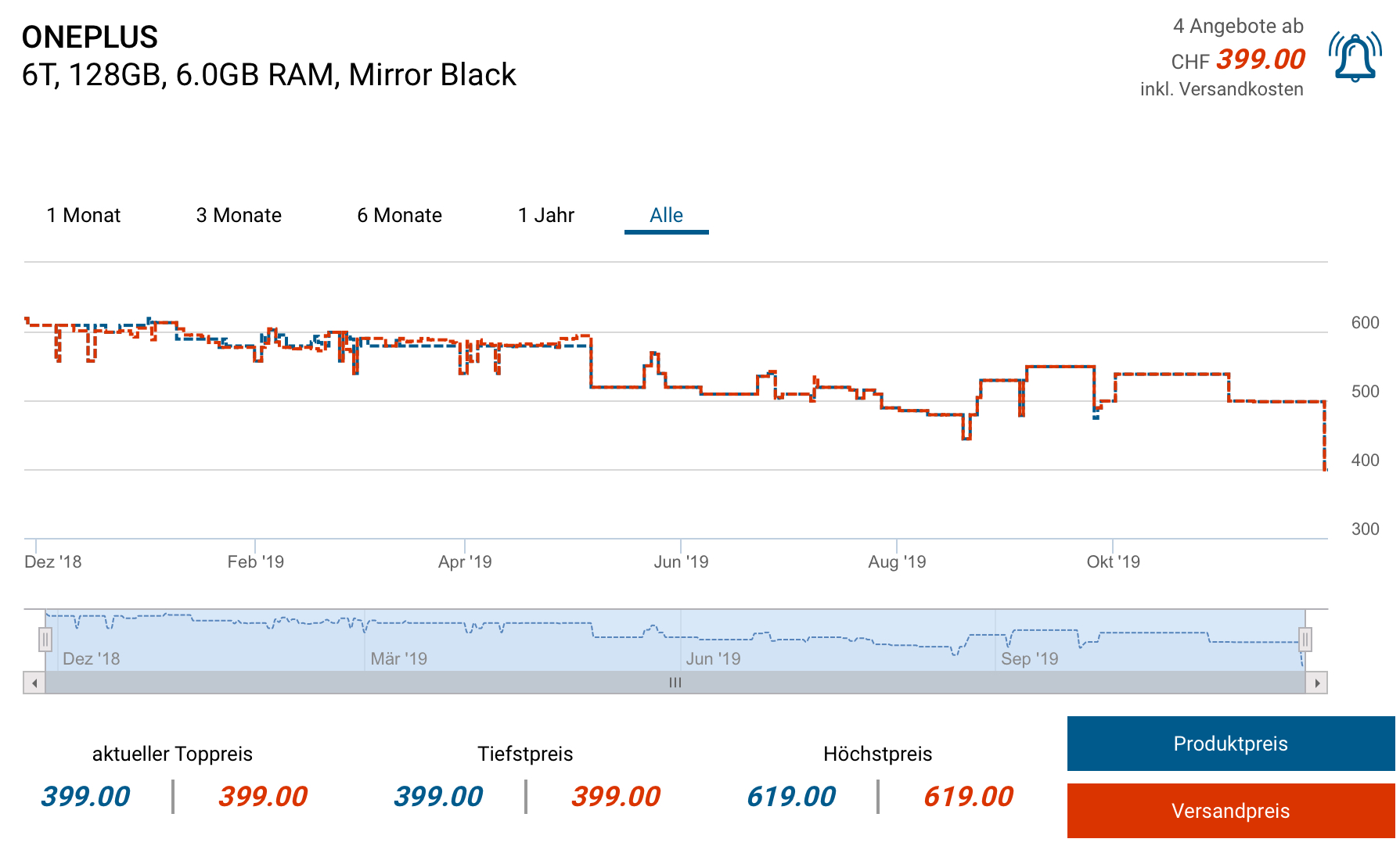 Bei amazon es gibt es aktuell das OnePlus 6T (6GB/128GB) für 309.99 EUR.
