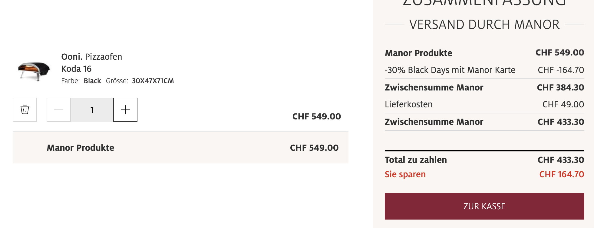 Manor bietet gerade den Ooni Pizzaofen Koda 16 zum Aktionspreis von 433.30 inkl. Versand.