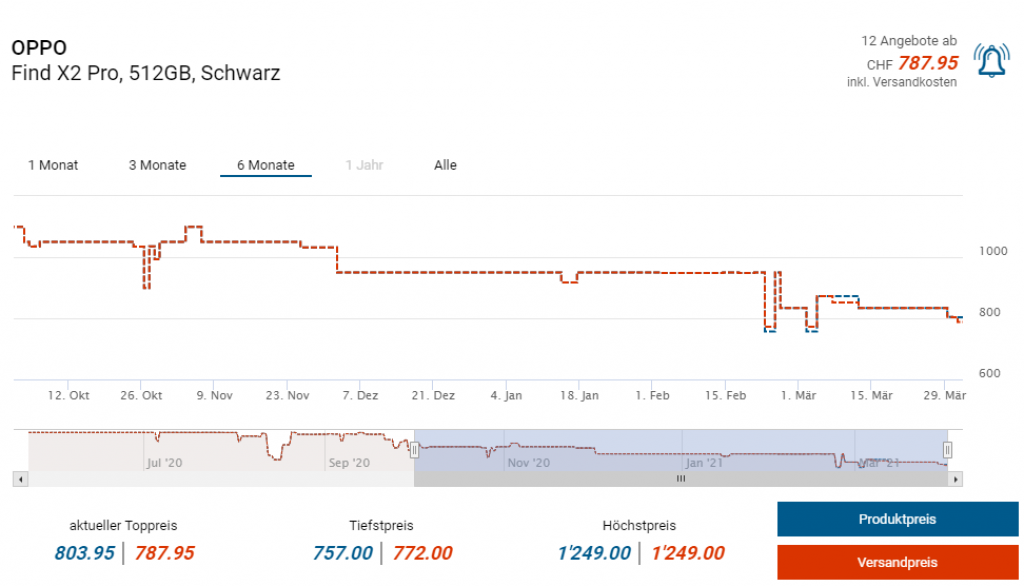 Bei Amazon Spanien gibts das letztjährige Top-Smartphone Oppo Find X2 Pro zum Aktionspreis von 672 Franken. Laut toppreise soll der Vergleichspreis derzeit bei etwa 788 Franken liegen.